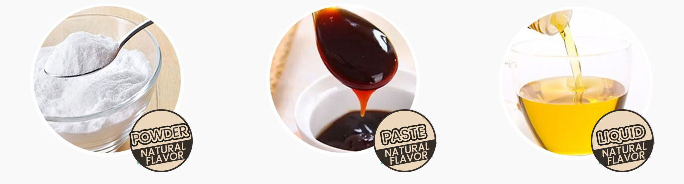 Seasoning flavors, classified by status: Powder, Paste and Oil